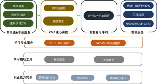 ①前导阶段:介绍 CMA 整体知识框架,了解 CMA 考试特点;掌握学习 CMA所需的会计及财务管理基础知识;